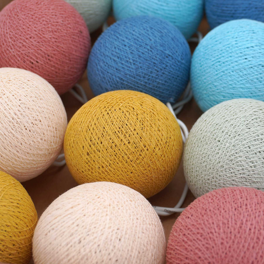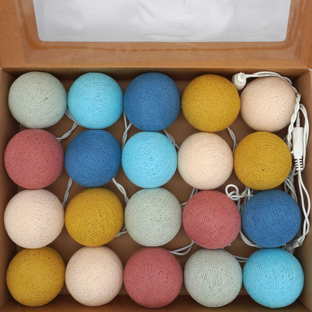 Caracol LED-Feenlichter „Reef" – Lichterkette mit 20 Baumwollbällen in zarten Pastellfarben