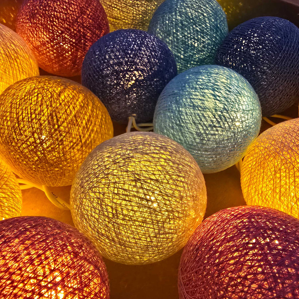 Die LED-Lichterkette „Reef" von Caracol bezaubert mit 20 handgefertigten Baumwollbällen in sanften Meeresfarben wie Türkis, Sandbeige, Korallenrosa und Muschelweiß. Die pastelligen Töne bringen harmonisches Licht und dezente Farbigkeit in Wohnräume, Kinderzimmer oder auf die Fensterbank – perfekt als Ganzjahresdeko mit ruhiger Ausstrahlung.