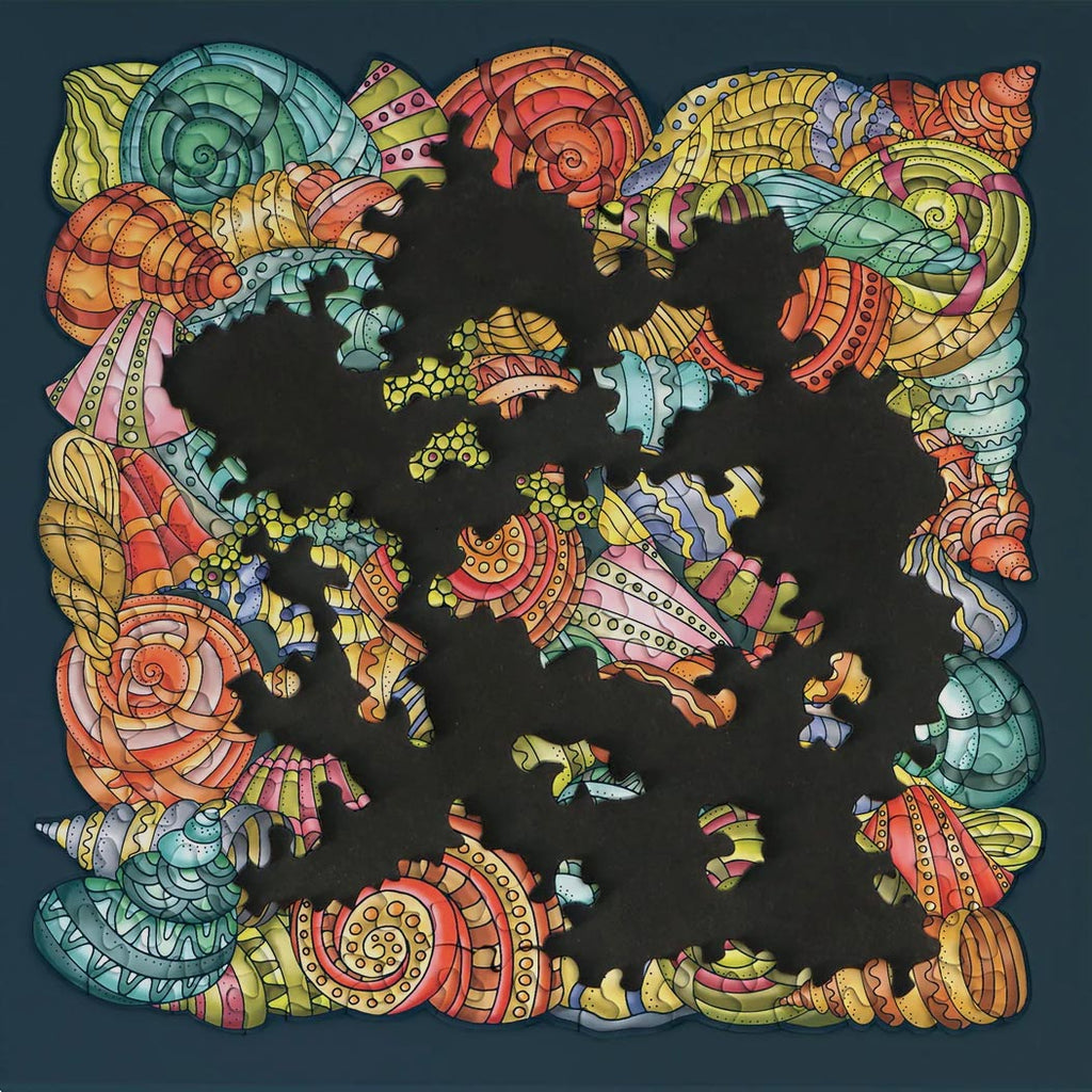 Jedes der 208 Puzzleteile ist ein kleines Kunstwerk für sich. Keine gerade Kante, keine klassischen Formen – stattdessen erwarten dich organisch geschwungene, wilde und kuriose Konturen, die ganz neue Wege des Denkens eröffnen. Der Rand? Freiform, fast wie vom Wasser gezeichnet – du wirst nicht einfach außen anfangen können. Dieses Puzzle ist kein Standard – es ist ein Abenteuer!