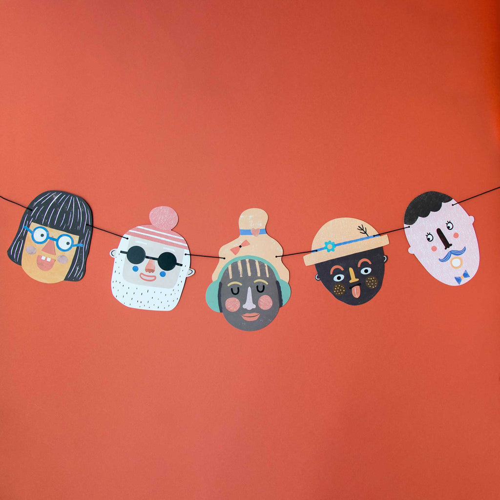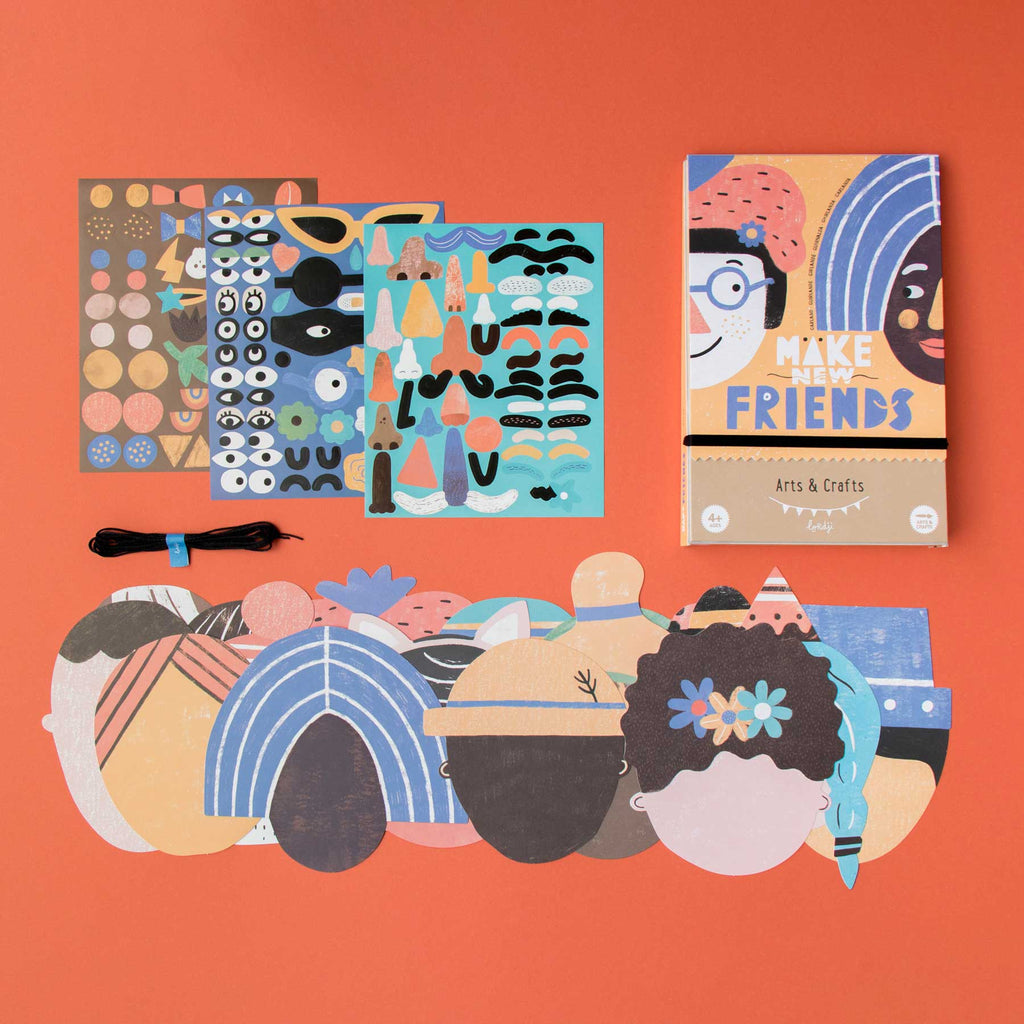 Mit Make New Friends von Londji entstehen im Handumdrehen fröhliche Girlanden – perfekt für Kinderzimmer, Geburtstagspartys oder als kunterbunte Fensterdeko. Aus 16 großen, liebevoll illustrierten Gesichtern und 150 wiederablösbaren Stickern entstehen immer neue Charaktere. Am Ende einfach mit der beiliegenden Schnur auffädeln und aufhängen – fertig ist eure ganz persönliche Freundes-Girlande!