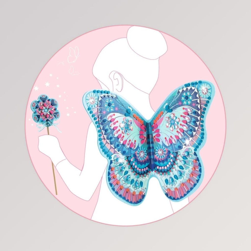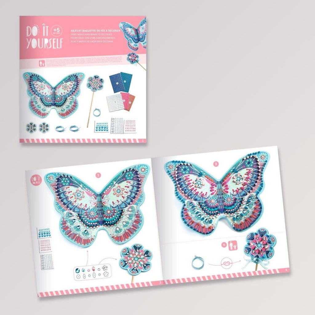 - Inhalt: 1 Paar illustrierte Flügel aus robustem Karton, 2 Gummibänder, 1 Zauberstab, 5 Bögen Mosaiksticker (Schaumstoff), 3 Stickerbögen mit „Edelsteinen“, 1 Schritt-für-Schritt-Anleitung