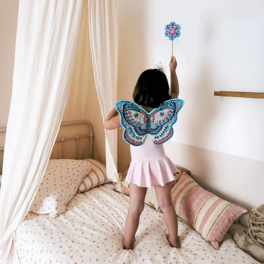 Die Flügel sind aus robustem Karton gefertigt und werden mit zwei Gummibändern getragen – leicht, stabil und gut geeignet für viele kleine Einsätze: zu Festen, an Geburtstagen oder einfach, weil ein Nachmittag nach Magie verlangt.