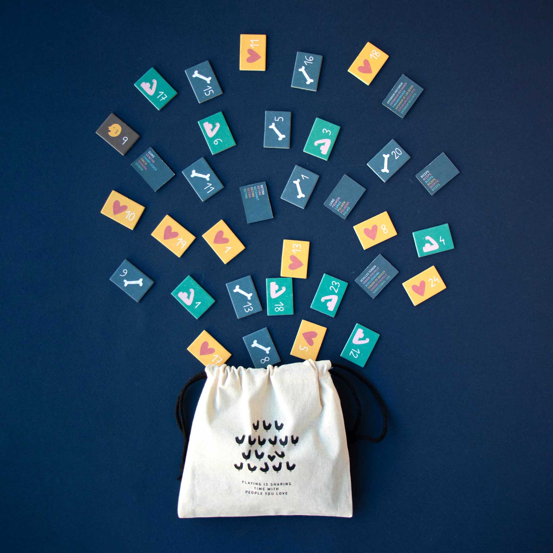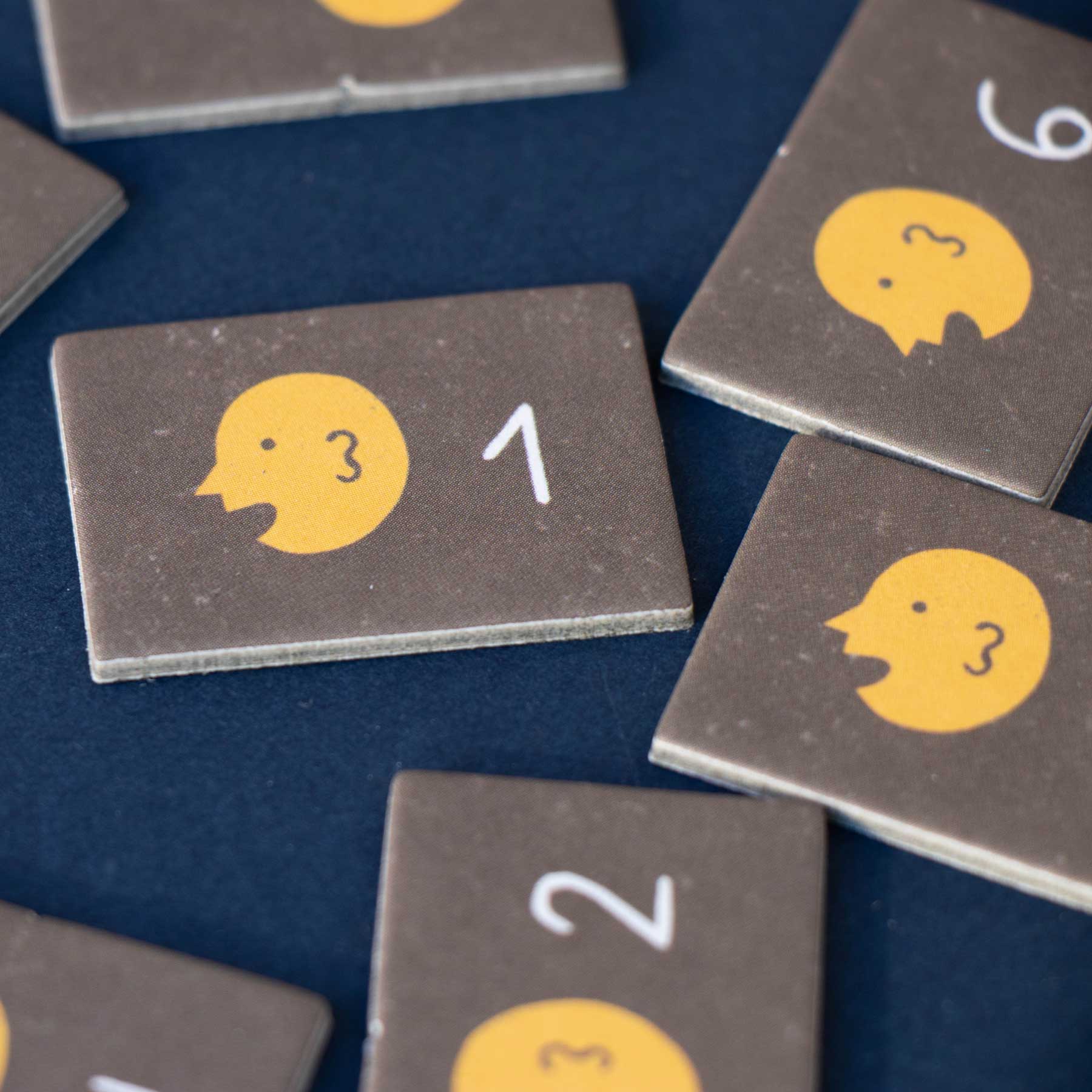 - Richtig? Chip gewonnen! Unsicher? Auf der Rückseite der Karte nachsehen, merken und später zurückerobern.