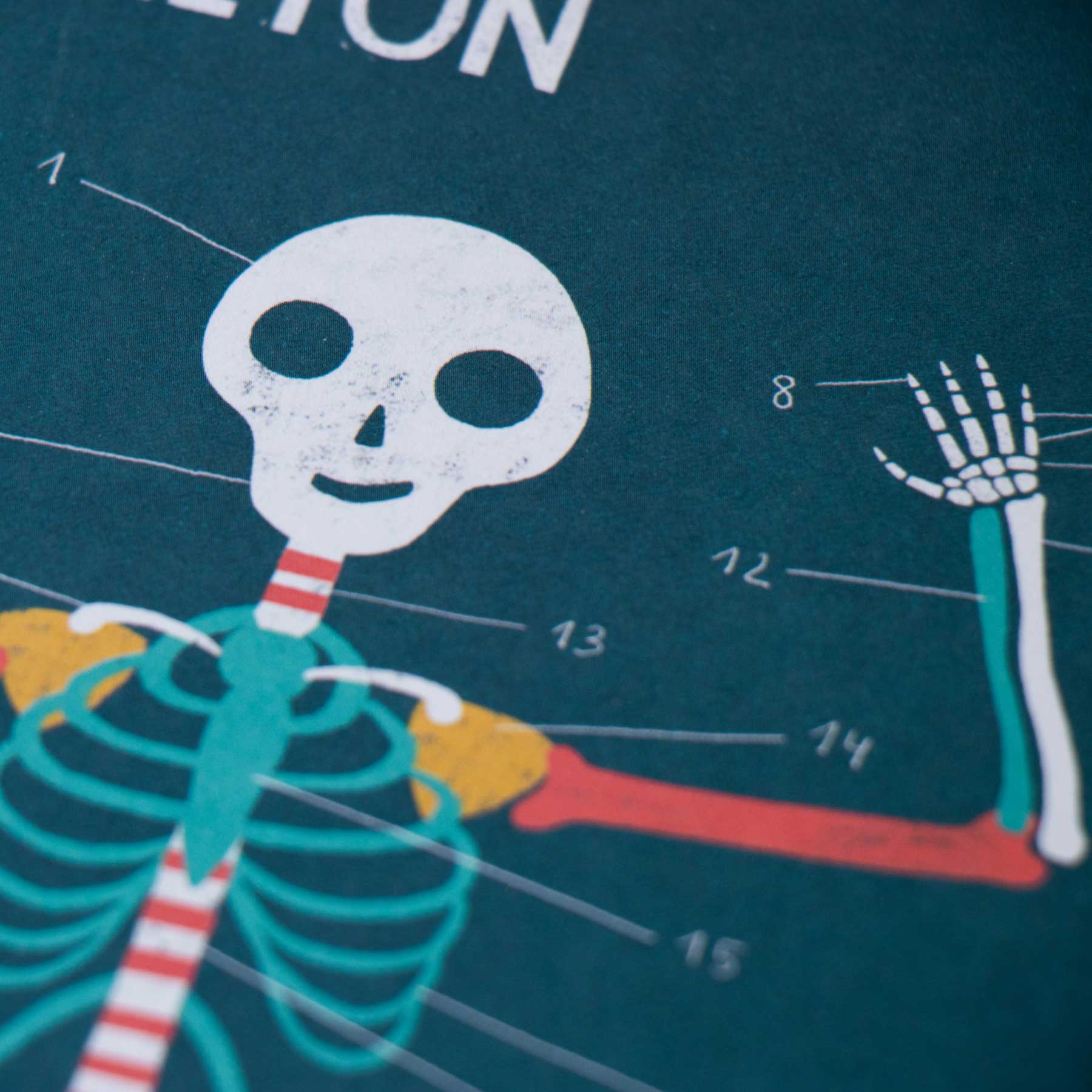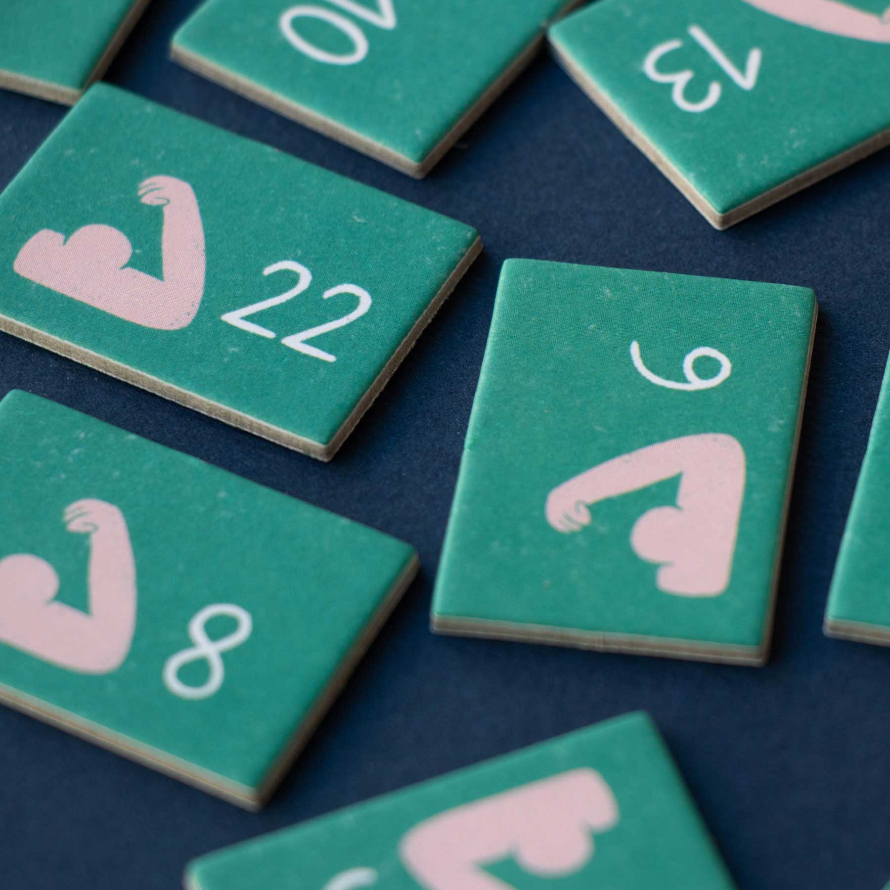 - Ein Kind zieht einen Chip, übergibt ihn an die/den Partner:in und nennt nach Zahl und Symbol die passende Körperkarte (z. B. Skelett) sowie den konkreten Körperteil.