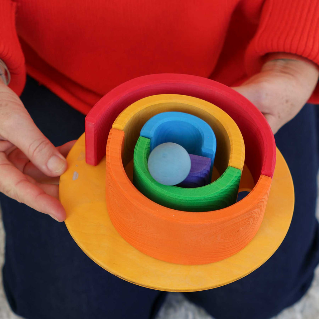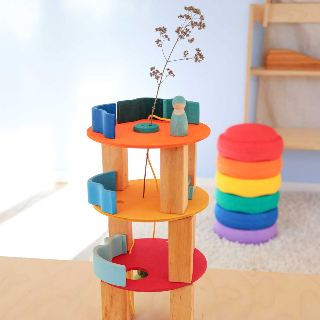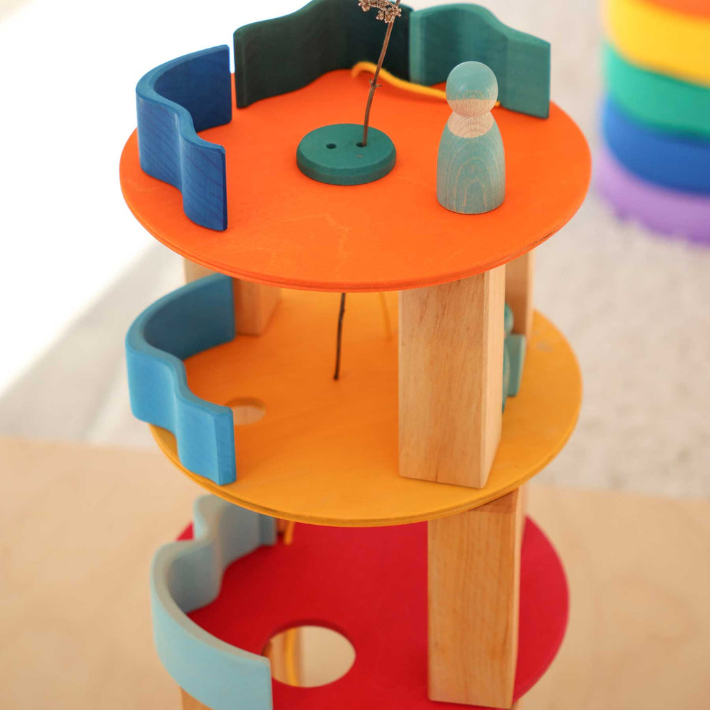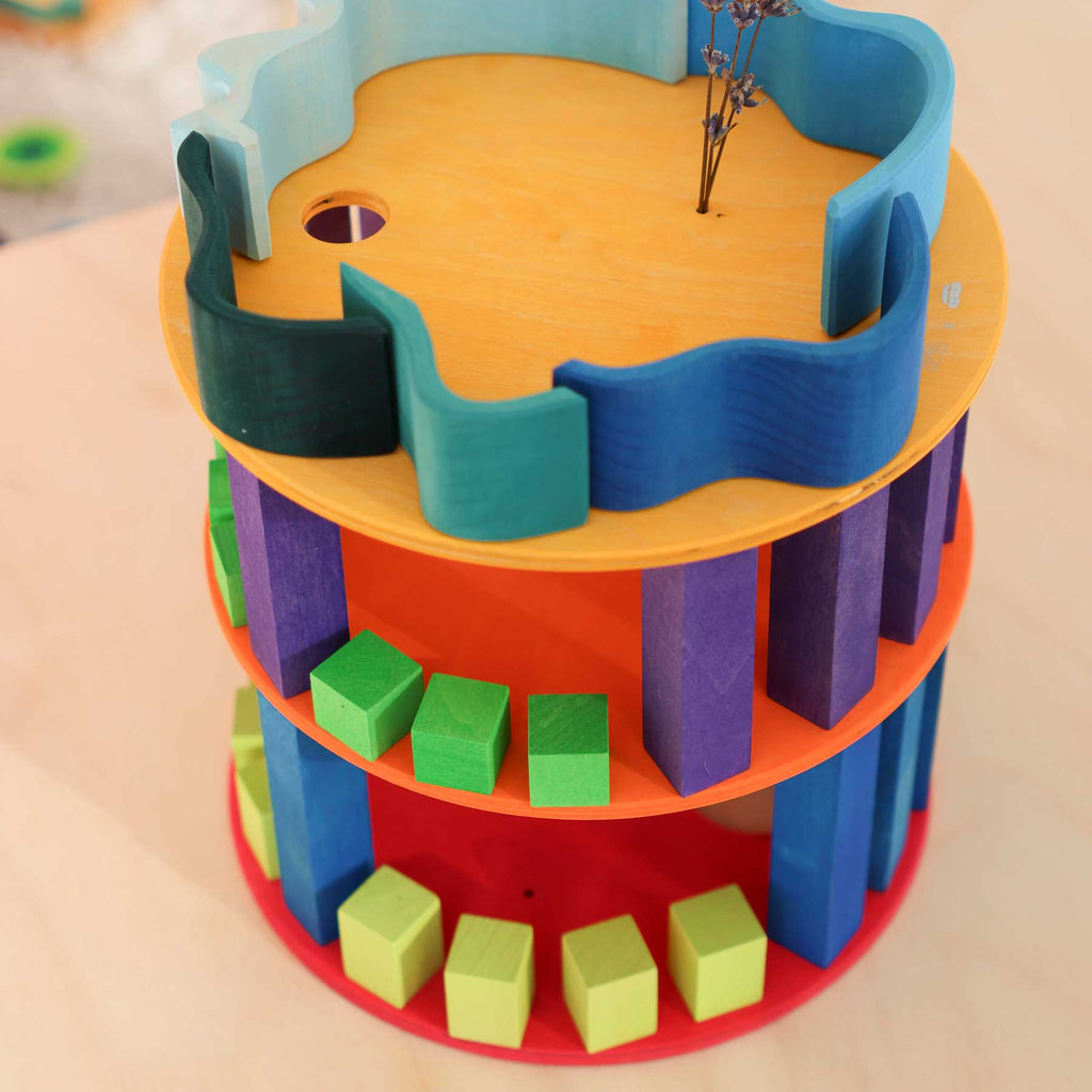 Ob einzeln oder übereinander in einem Stapelturm eingesetzt: Die Kugeln rollen durch die Löcher hindurch – ein faszinierendes Spiel mit Bewegung, Gleichgewicht und gezieltem Einsatz. Ganz nebenbei werden Feinmotorik, Konzentration und räumliches Denken spielerisch gefördert.