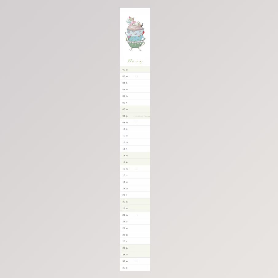 - Format: Streifenkalender, Hochformat, zum Aufhängen