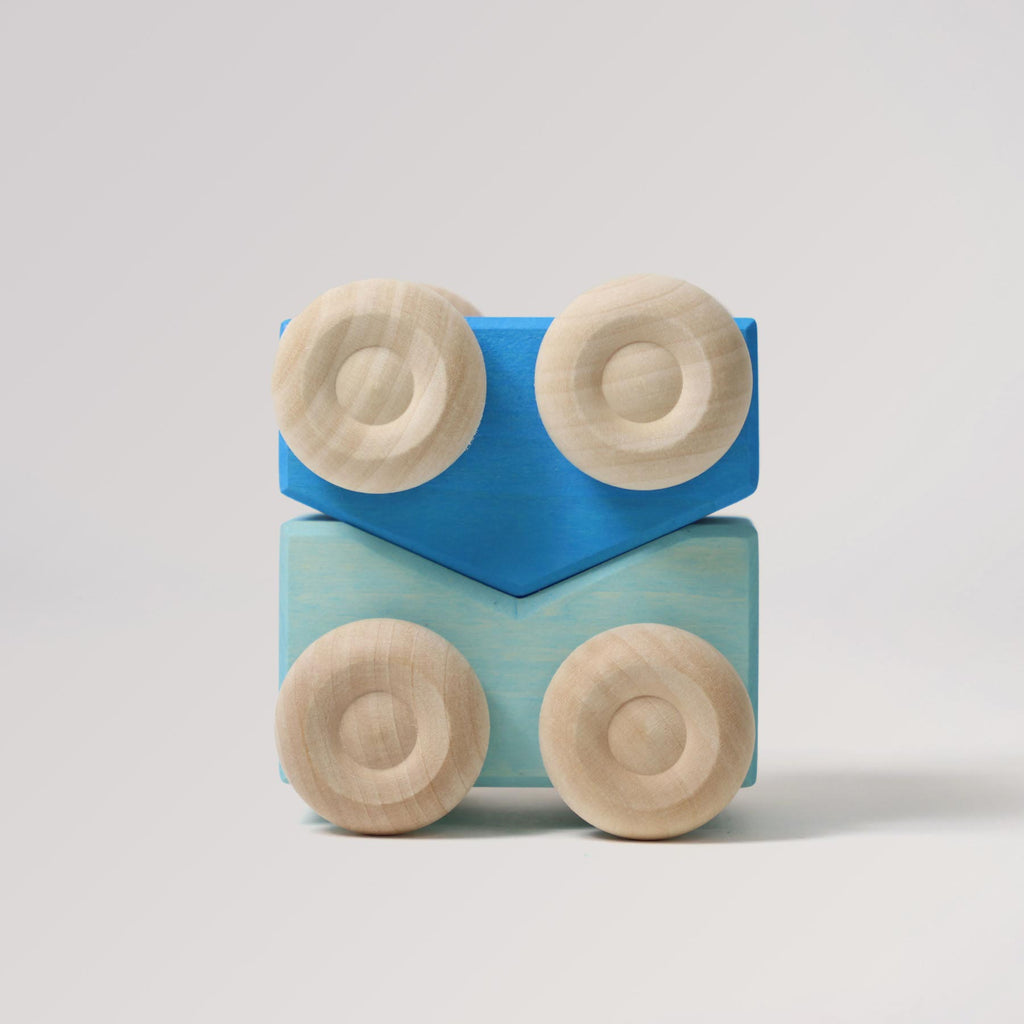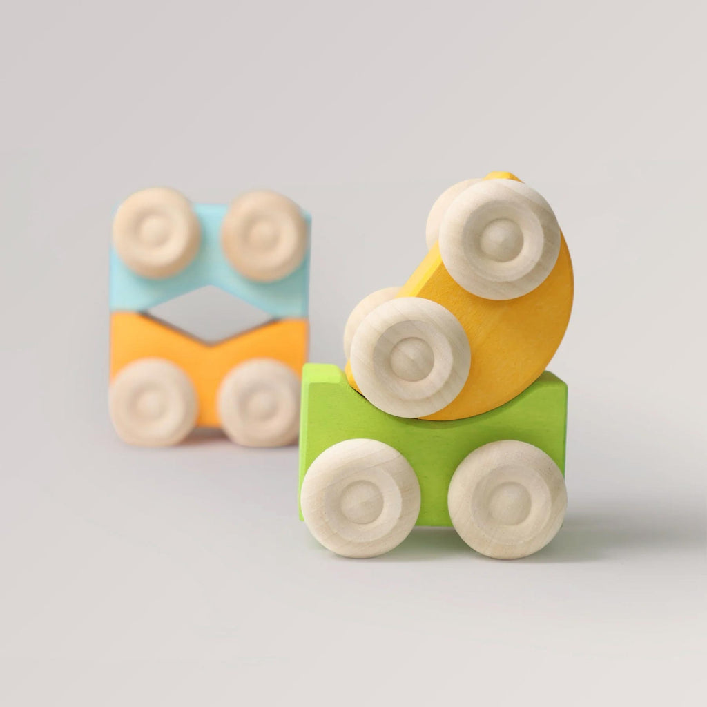 Ob als erstes Schiebeauto, als Mini-Transporter für Ringe und Klötze oder als kippelige Stapel-Challenge – die kompakten Flitzer wachsen mit den Fähigkeiten mit und harmonieren prima mit anderen Grimm’s Bauteilen.