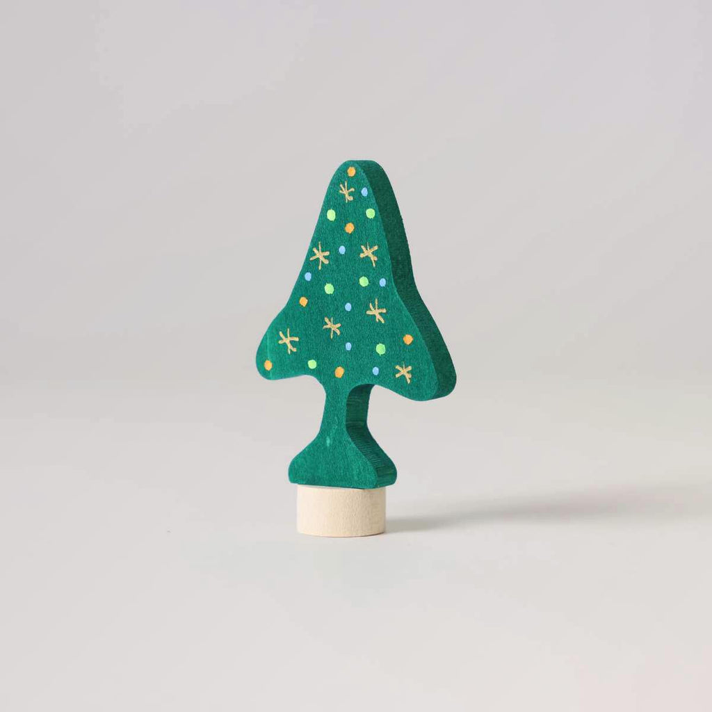 Die handbemalte Steckfigur Weihnachtsbaum von Grimm's eignet sich ideal zur Gestaltung einer liebevollen Weihnachtsdekoration mit den Geburtstagsringen. Sie wurde aus heimischen Lindenholz gefertigt und mit natürlichen und unbedenklichen Farben von Hand bemalt.