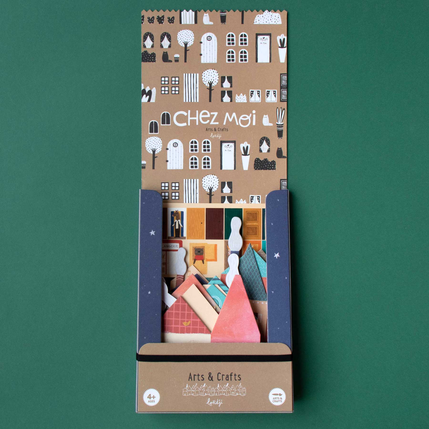 Willkommen in meiner Straße! Mit dem Kreativ-Set „Chez Moi“ von Londji gestalten Kinder bunte Häuserzeilen immer wieder neu. Die Sticker sind wiederverwendbar – so lassen sich Fenster, Türen, Bäume, Läden & Figuren beliebig versetzen und die Szene jedes Mal anders erzählen. Ideal für freies Gestalten, Rollenspiel und erstes Stadtplanen.