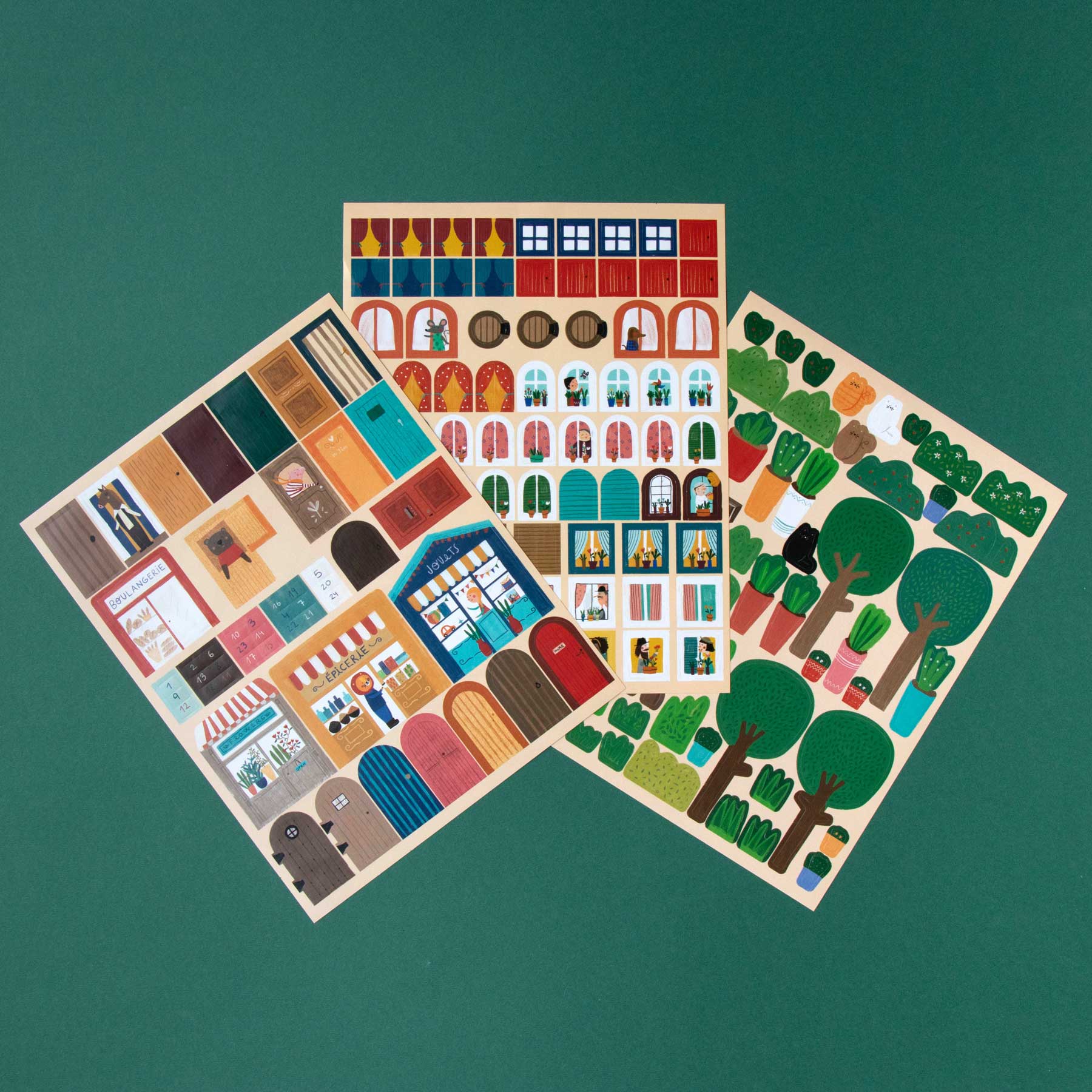 - 185 wiederverwendbare Sticker (Fenster, Türen, Pflanzen, Läden, Figuren u. v. m.)