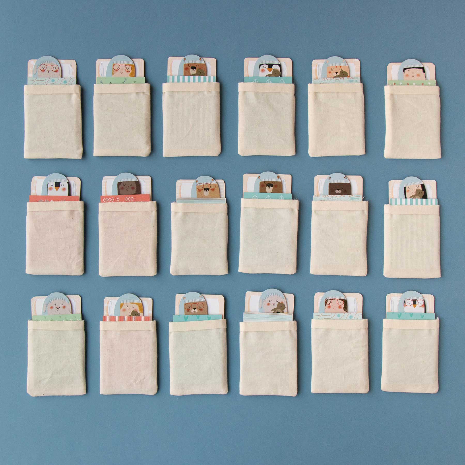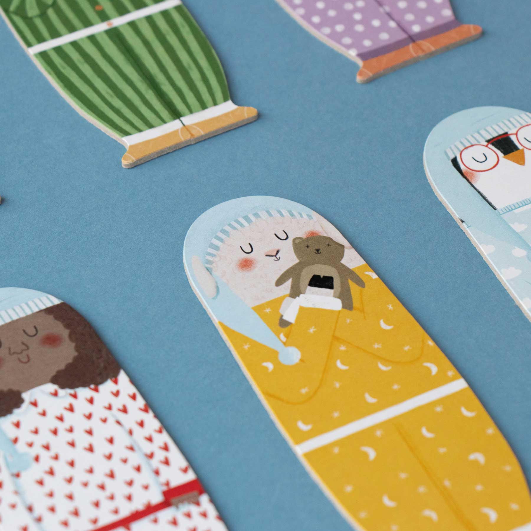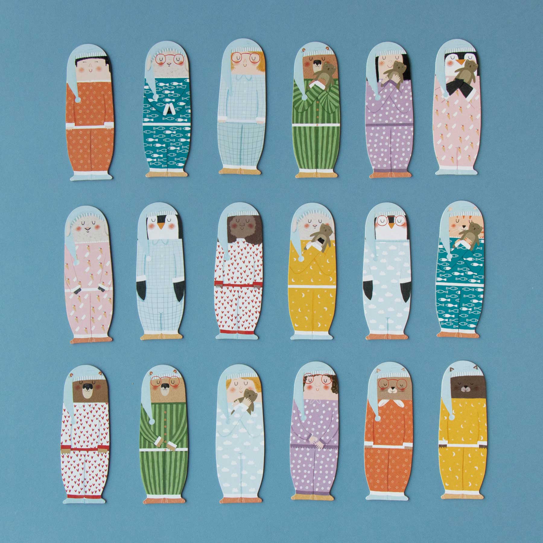 In dieser klassischen Memory-Variante geht es darum, die Traumfreunde mit identischen Pyjamas zu finden. Zuerst werden die 18 Bettkarten vorbereitet: auf jede kommt ein Charakter mit verdecktem Pyjama. Wer an der Reihe ist, darf zwei „Traumfreunde“ aufdecken. Tragen sie das gleiche Pyjama-Muster? Dann dürfen sie schlafen gehen – mit der Bildseite nach unten. Sind sie verschieden, werden sie wieder zugedeckt. So geht es reihum weiter, bis alle Freunde im Bett liegen. Wer möchte, kann das Spiel erschweren, indem man alle Figuren zu Beginn schlafend platziert – dann muss man sich merken, welcher Pyjama zu wem gehört.