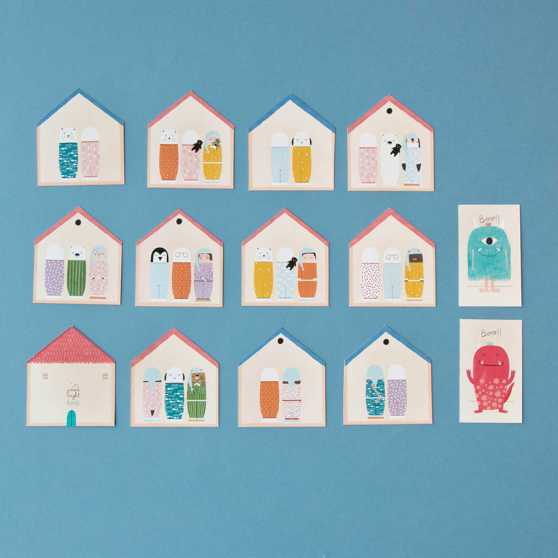 Wer trägt die gleichen Pyjamas? Wer wohnt im selben Haus? Und wo versteckt sich das Monster unter dem Bett? „Good Night!“ von Londji ist ein liebevoll illustriertes Spiel für Kinder von 3 bis 6 Jahren – mit gleich drei fantasievollen Spielvarianten rund um das Thema Schlafengehen. Made in Barcelona, nachhaltig produziert aus FSC-zertifiziertem Papier und recycelter Pappe, mit Illustrationen von Canseixanta.