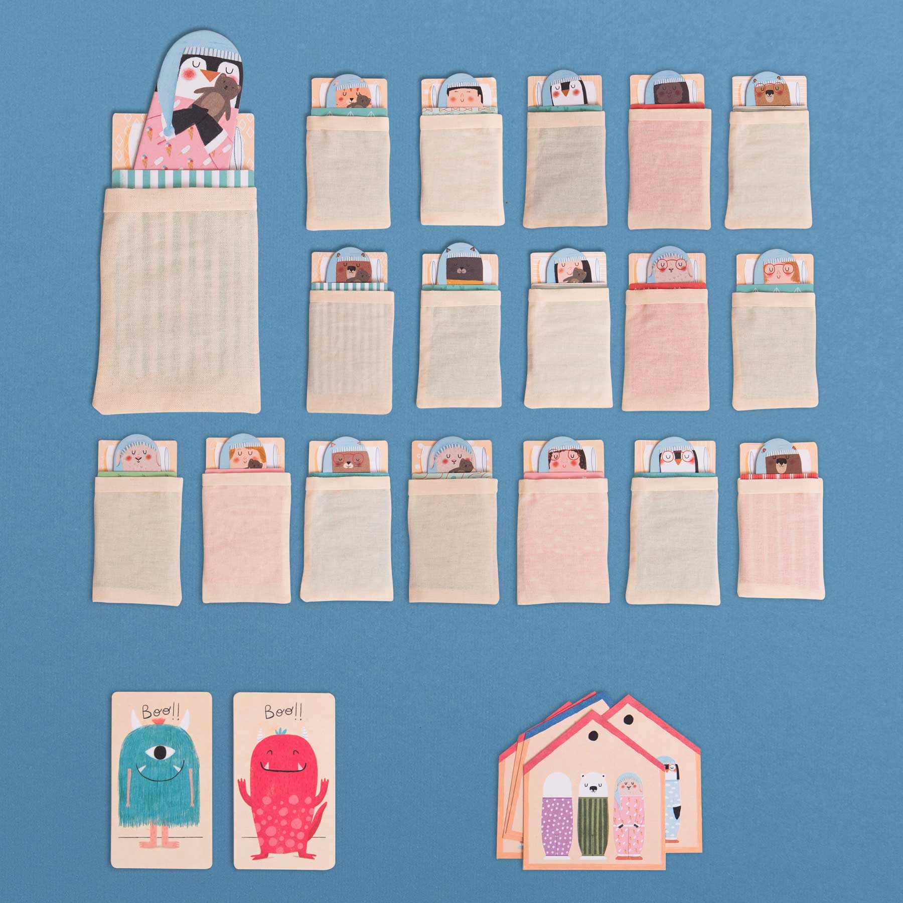 In diesem spannenden Rätselspiel übernimmt ein Spieler die Rolle des „Regisseurs“ und versteckt heimlich ein Monster unter einem der Betten. Die anderen stellen nacheinander Ja-/Nein-Fragen, um Hinweise zu sammeln. Zum Beispiel: „Versteckt sich das Monster unter dem Bett einer Figur mit Brille?“ Oder: „Ist es eine Figur mit Punkten auf dem Pyjama?“ Nach maximal fünf Fragen müssen die Spieler raten, unter welchem Bett sich das Monster versteckt. Für Fortgeschrittene: Verstecke gleich zwei Monster – das macht die Suche noch kniffliger!