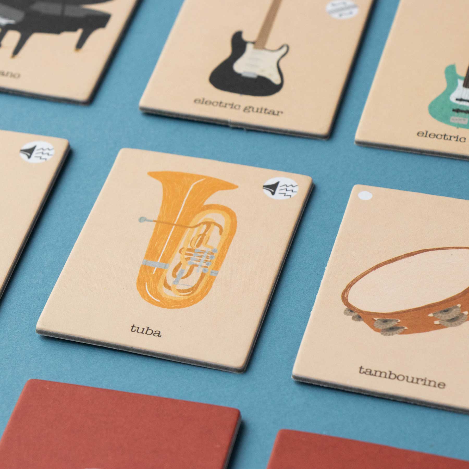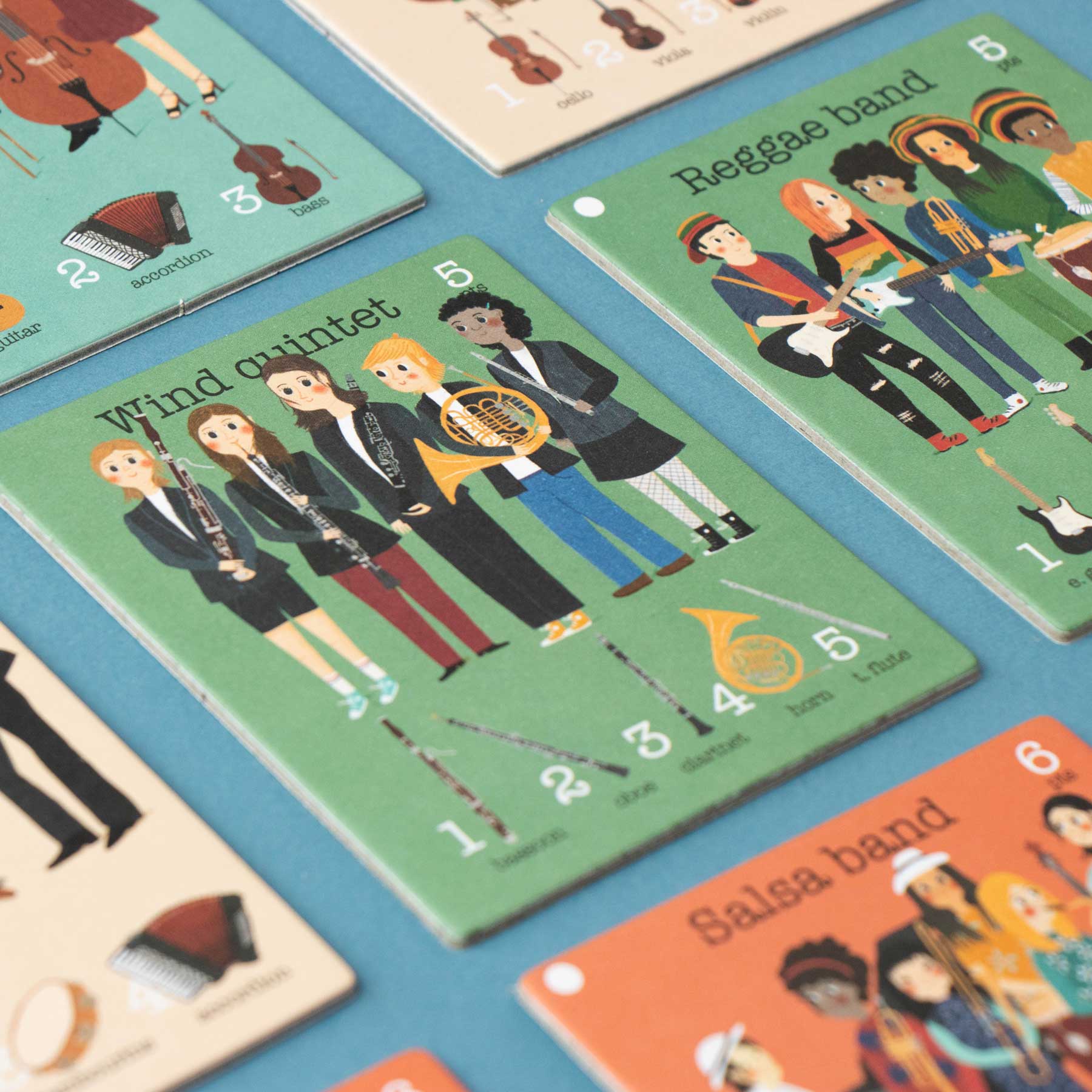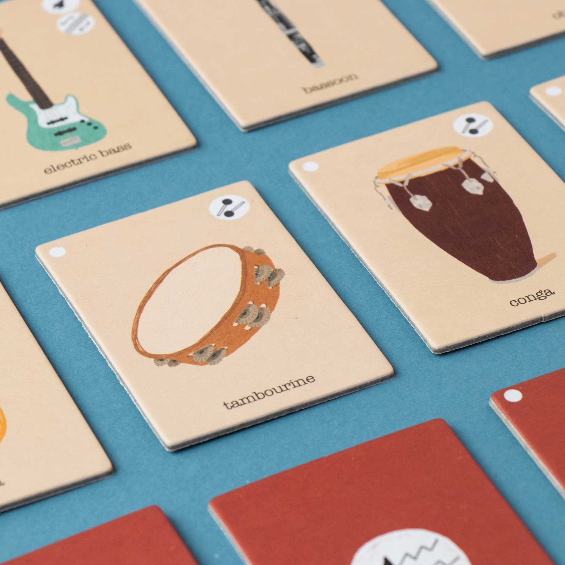 - Stimmt’s, legt ihr das Instrument zur passenden Gruppenkarte. Liegt ihr falsch, wird sie wieder verdeckt.