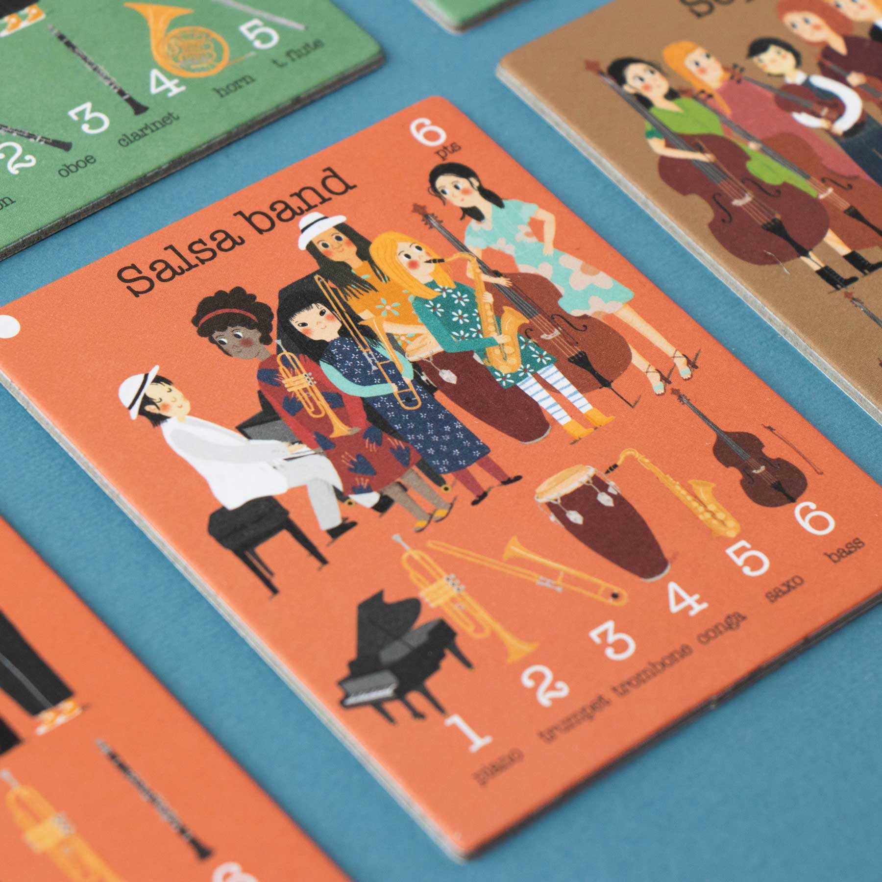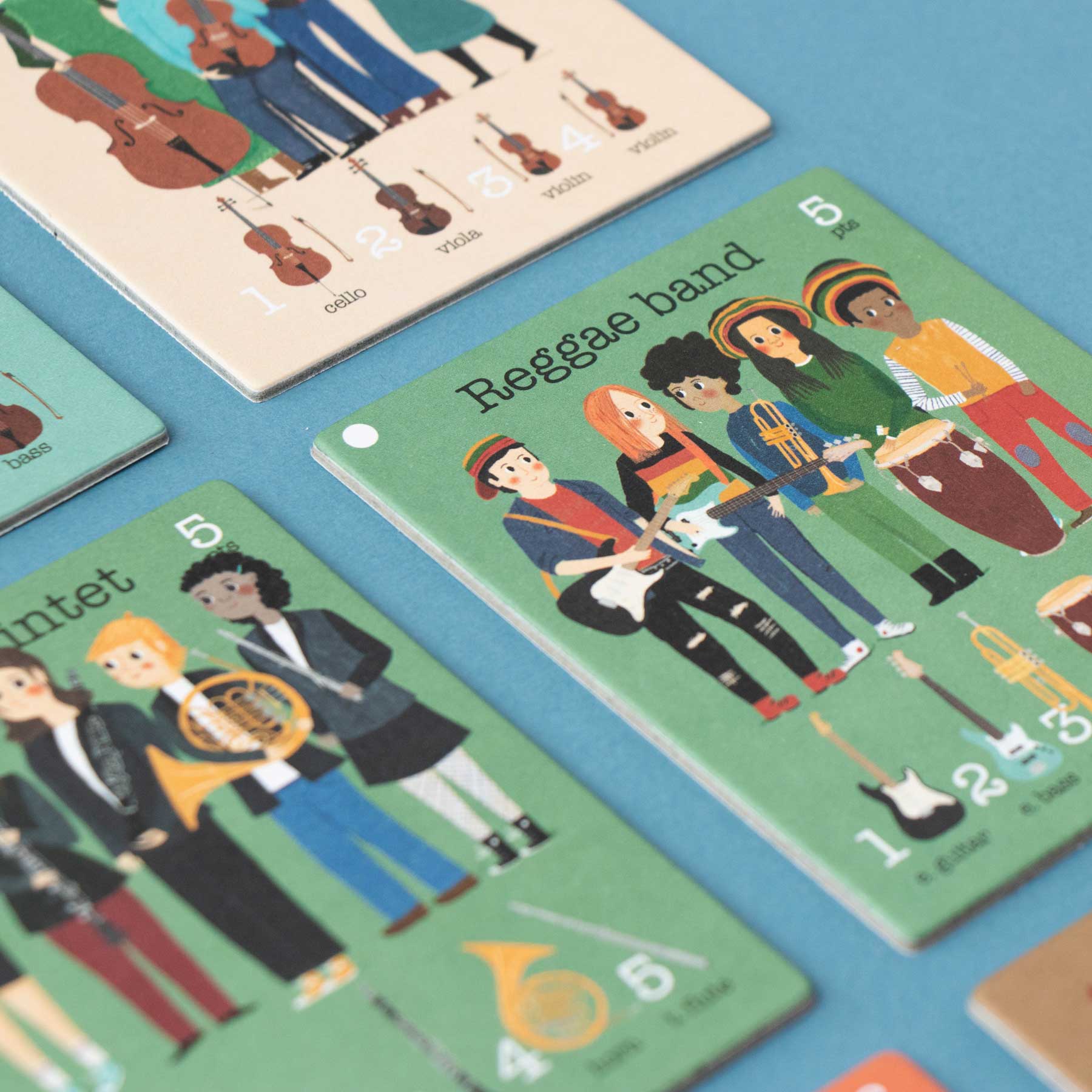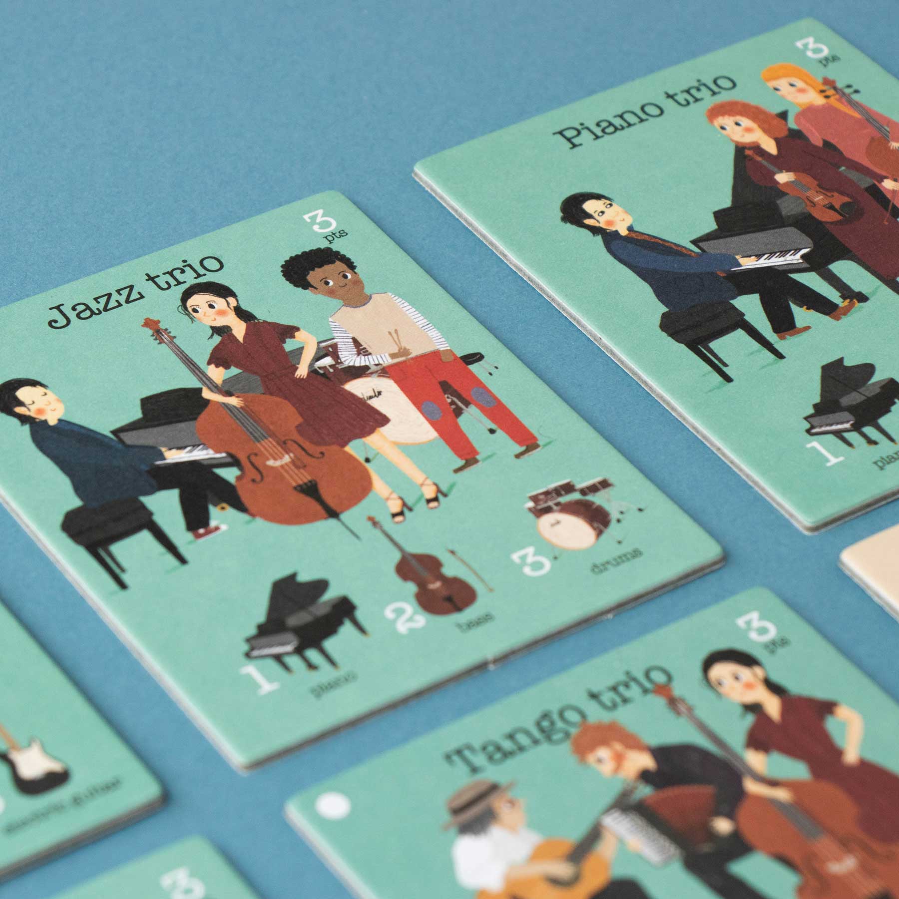 - Stimmt’s, legt ihr das Instrument zur passenden Gruppenkarte. Liegt ihr falsch, wird sie wieder verdeckt.