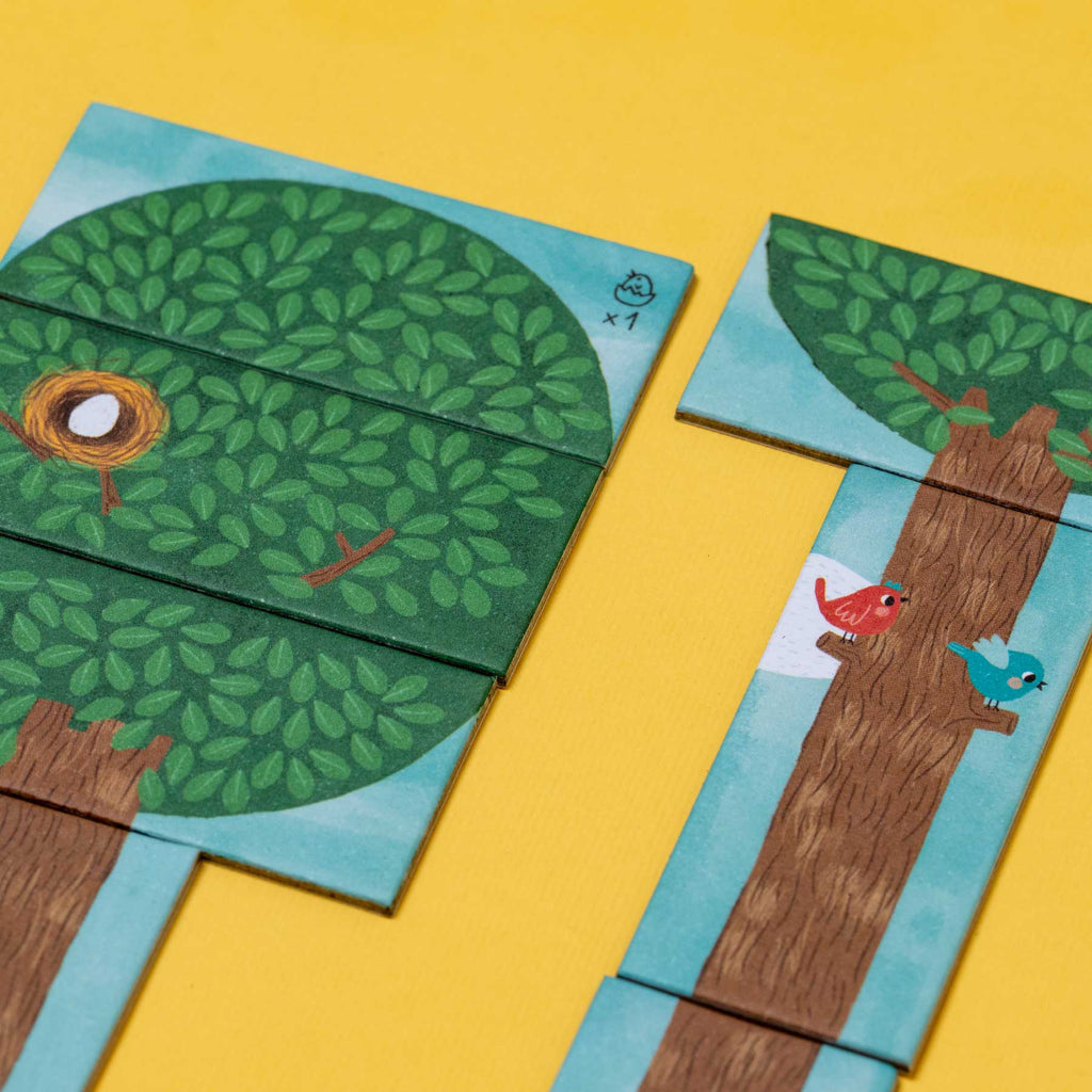 Piu Piu ist ein kleines, cleveres Mitnehmspiel aus dem Londji-Wald für Kinder ab etwa 4 Jahren: Aus Wurzeln, Stamm und Baumkrone entstehen Bäume mit Nestern – und in diesen Nestern warten schon die kleinen Küken darauf, endlich zu schlüpfen.