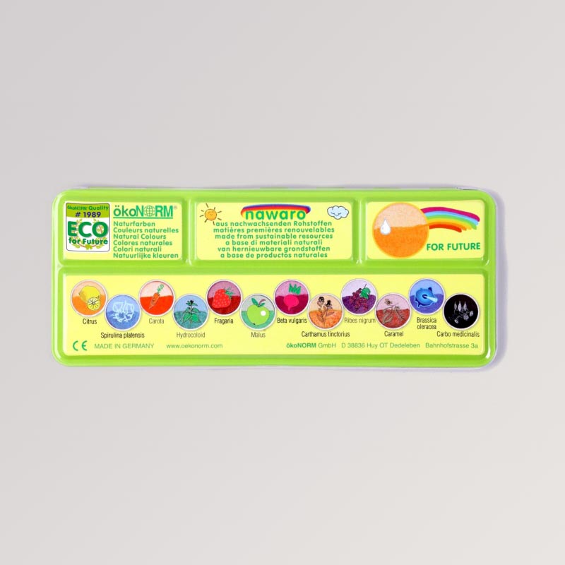 Wenn beim Malen nicht nur Farbe, sondern richtig Leuchtkraft entstehen soll, ist dieser nawaro Farbkasten von ökoNORM ein kleines Highlight: 12 Wasserfarben auf Basis pflanzlicher Grundstoffe, die erst mit Wasser ihre ganze Tiefe zeigen – von sanften Naturtönen bis zu kräftigen, strahlenden Nuancen.
