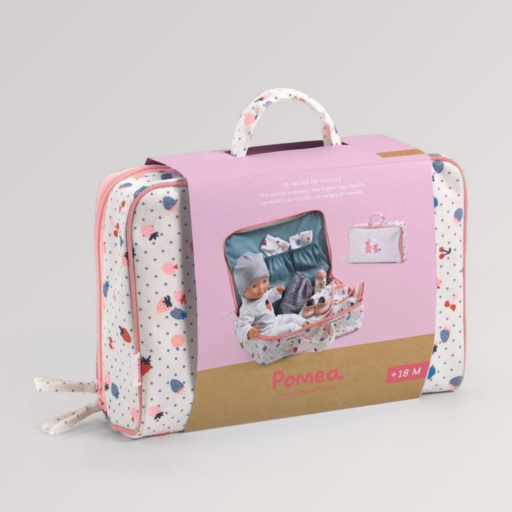 Bereit für große Abenteuer: Mit der liebevoll gestalteten Babypuppe „Vanille“ aus der POMEA-Serie von Djeco beginnt das Reisen im Spielzimmer! In einem hübsch bedruckten Koffer aus Stoff reist Baby Vanille samt Kleidung, Fläschchen und Accessoires an – und ist bereit für jede Menge Rollenspielspaß.