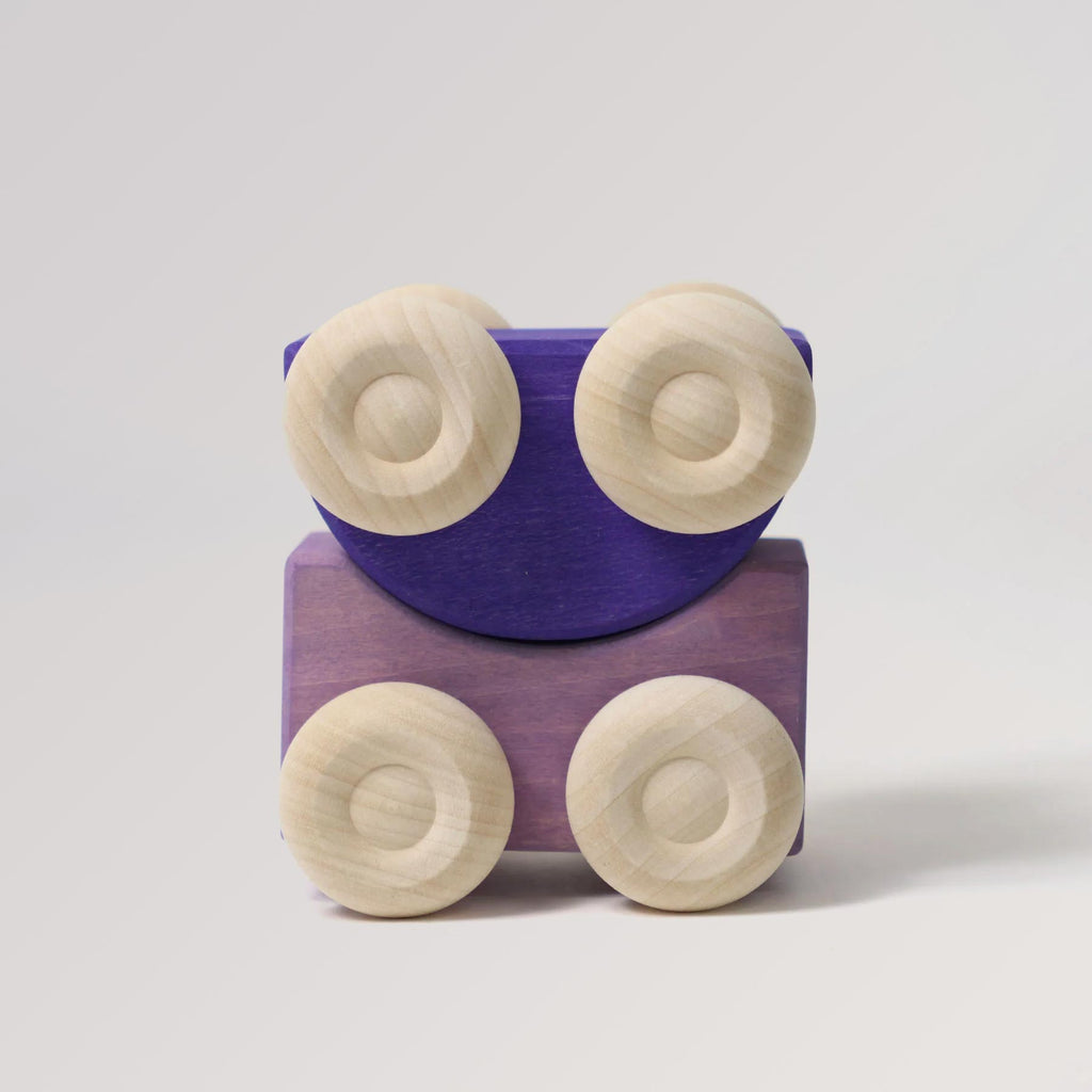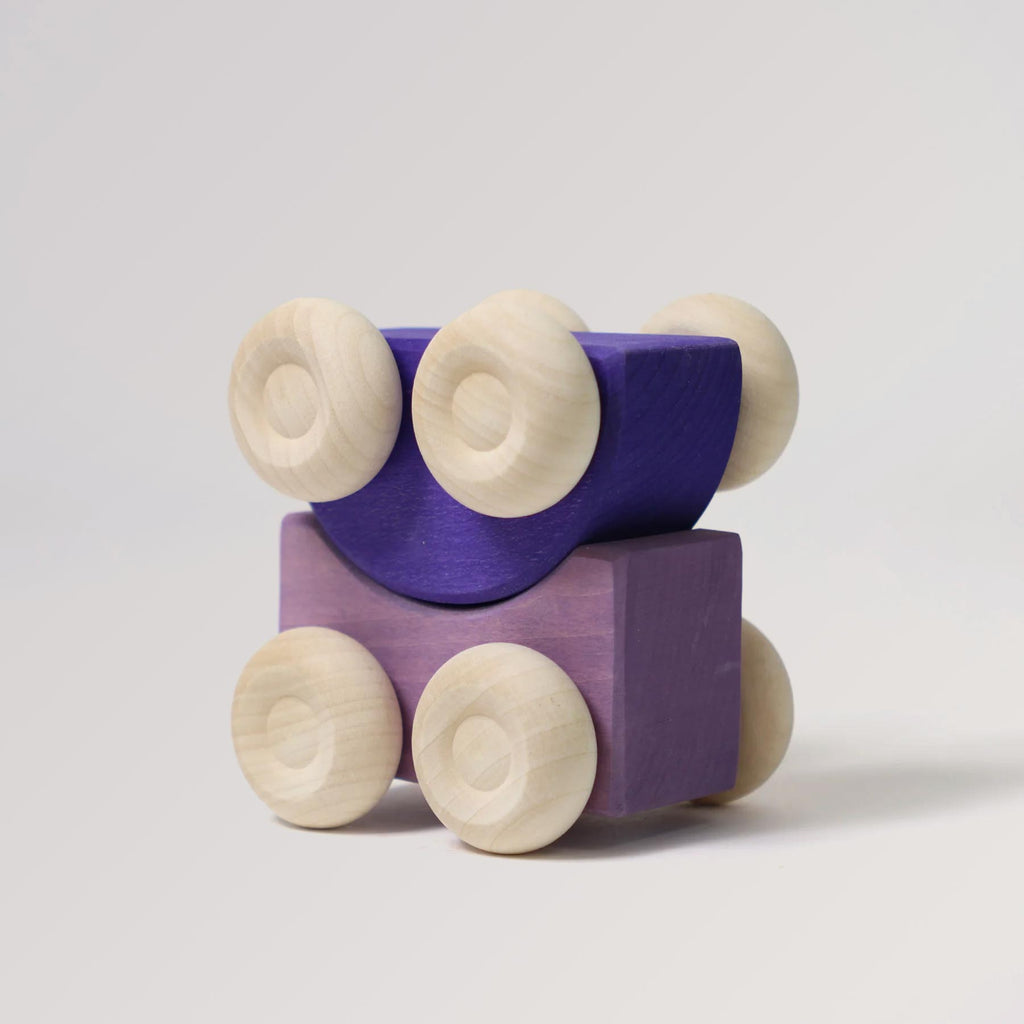 Diese zwei kleinen Stapel-Autos verbinden, was Kinder lieben: Sie rollen wunderbar leicht – und sie lassen sich zu spannenden Formen auftürmen. Das besondere Duo in Lila/Violett besteht aus einem Kastenwagen mit sanfter Mulde und einem halbrunden „Bogen“-Auto. Beide passen formschlüssig aufeinander, können Bausteine oder kleine Figuren transportieren und laden zu ersten Bau-, Fahr- und Gleichgewichtsexperimenten ein.