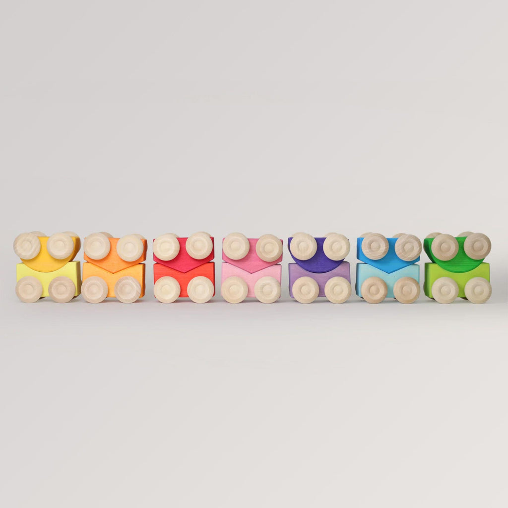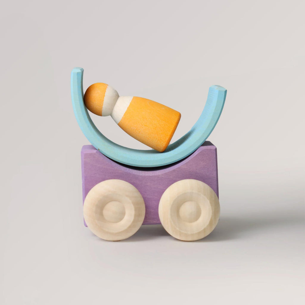 Ob als erstes Schiebeauto, als Mini-Transporter für Ringe und Klötze oder als kippelige Stapel-Challenge – die kompakten Flitzer wachsen mit den Fähigkeiten mit und sind ideal kombinierbar mit anderen Grimm’s Bauteilen.