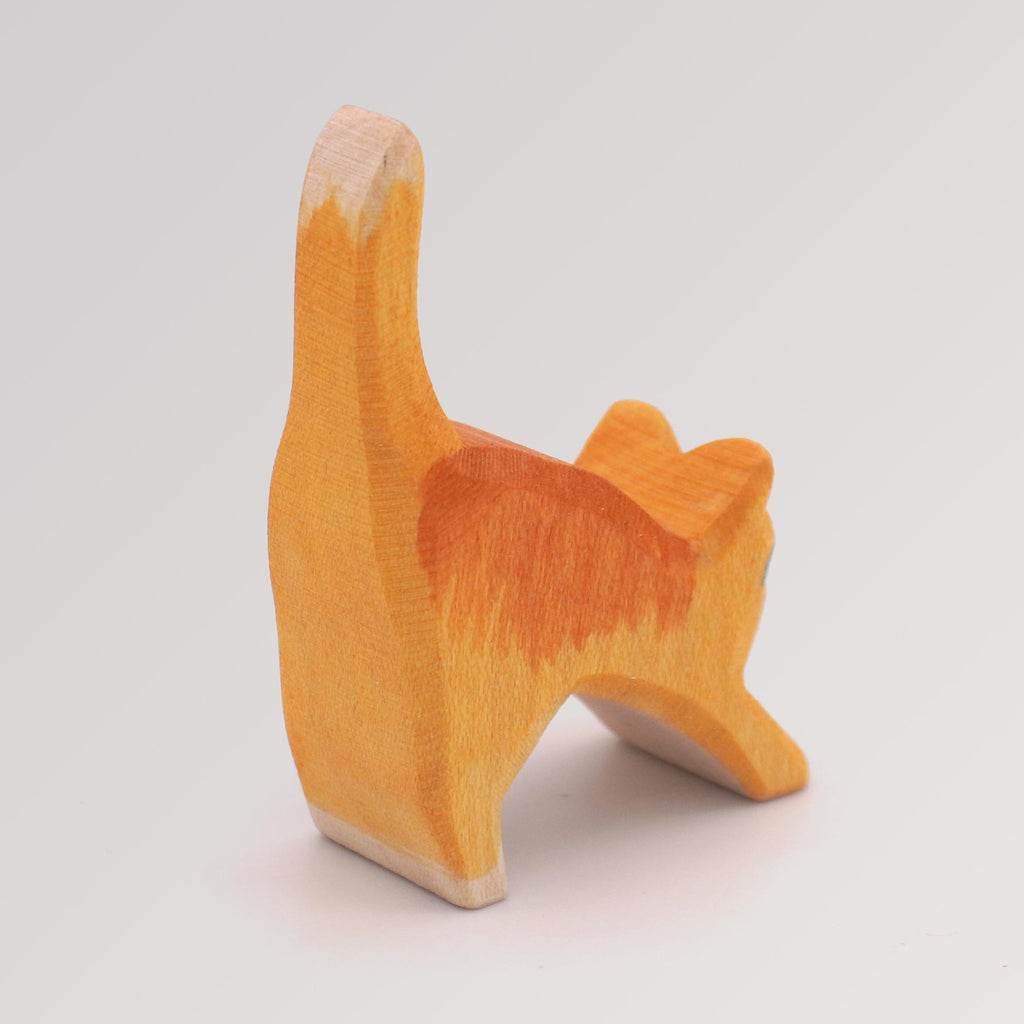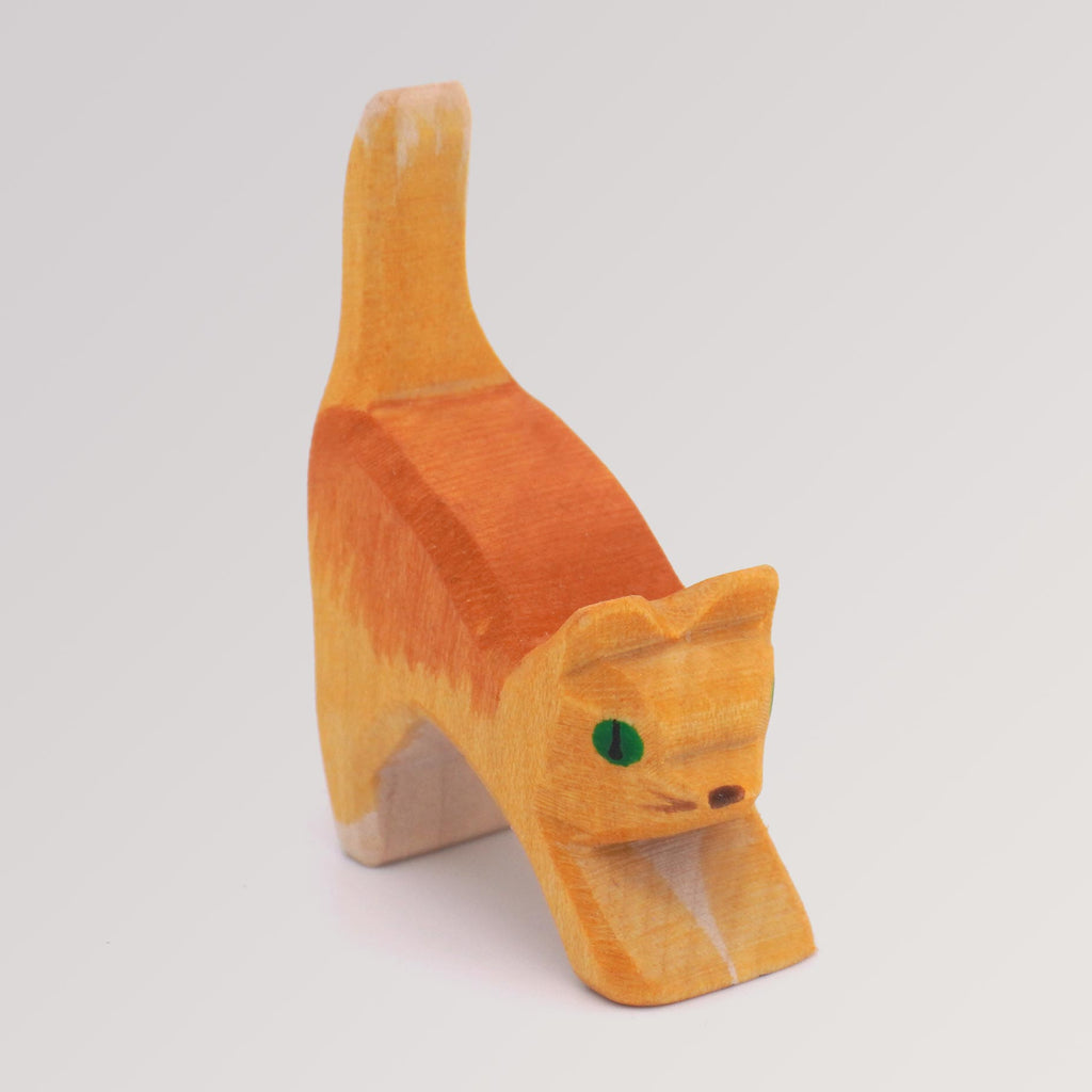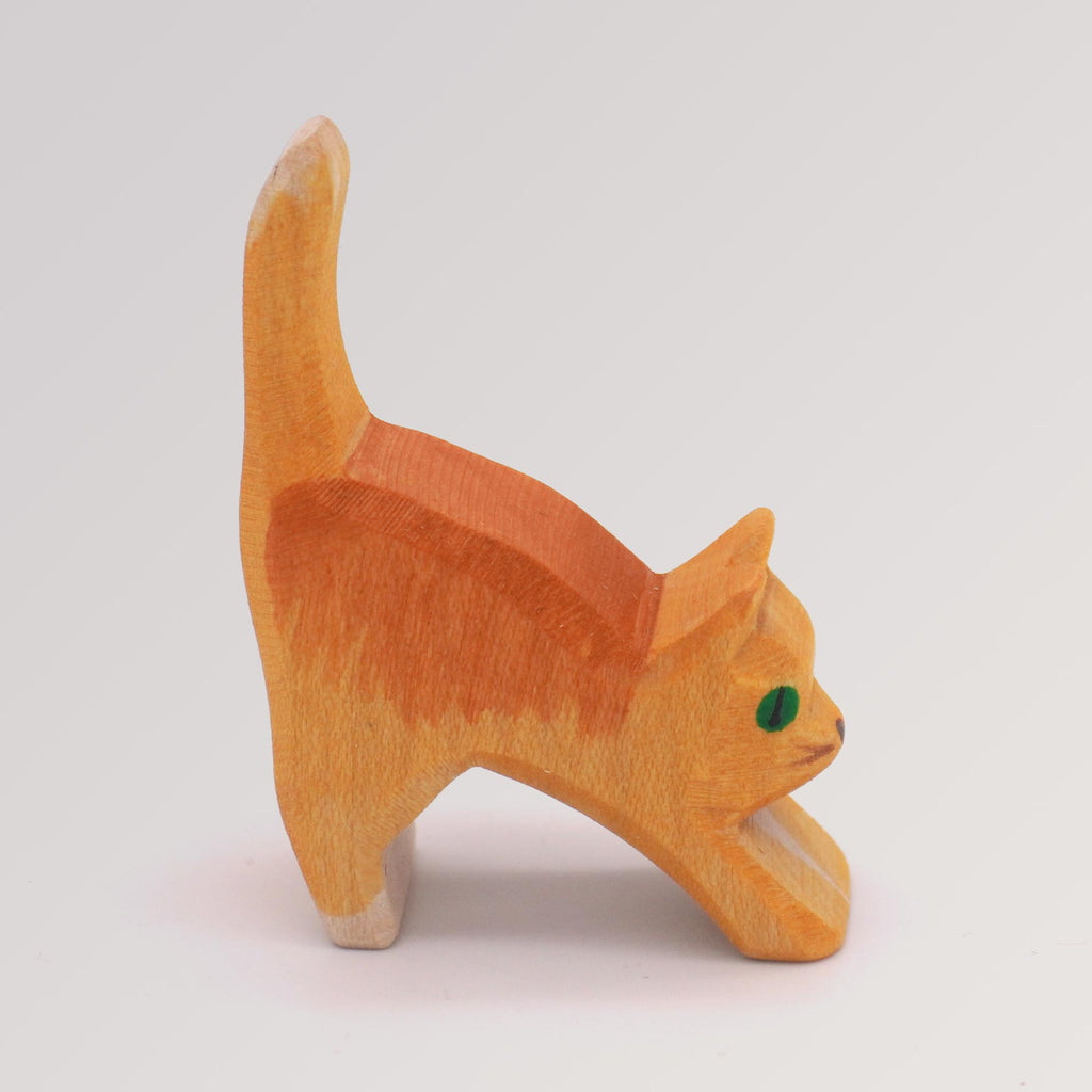 Holzfigur kleine Katze, Kopf tief von Ostheimer.