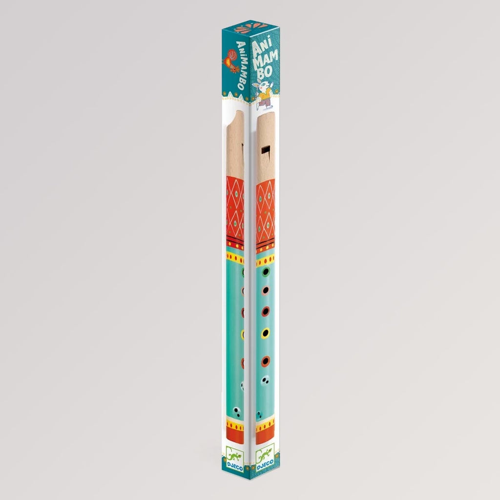 Optisch begeistert die Flöte mit einem hellblauen Korpus, fröhlich bunten Ringmustern an den Tonlöchern sowie einem detailreich verzierten roten Dekorband nahe dem Mundstück. Das bunte Design ist typisch für die beliebte Animambo-Reihe von Djeco und spricht Kinder visuell besonders an.