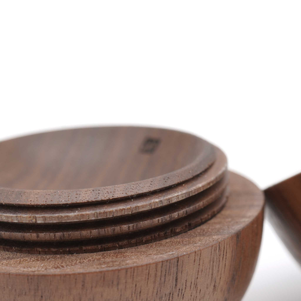 Die Stehaufdose natur der Mader Kreiselmanufaktur aus Österreich ist ein Meisterstück feinster Drechselkunst – handgefertigt aus edlem Nussholz, mit durchgehender Holzmaserung, in perfekter Harmonie gefertigt und mit BIO-Naturöl eingelassen. Jede einzelne Dose ist ein Unikat, das nicht nur durch ihre äußere Schönheit besticht, sondern durch ihre handwerkliche Raffinesse im Inneren begeistert.