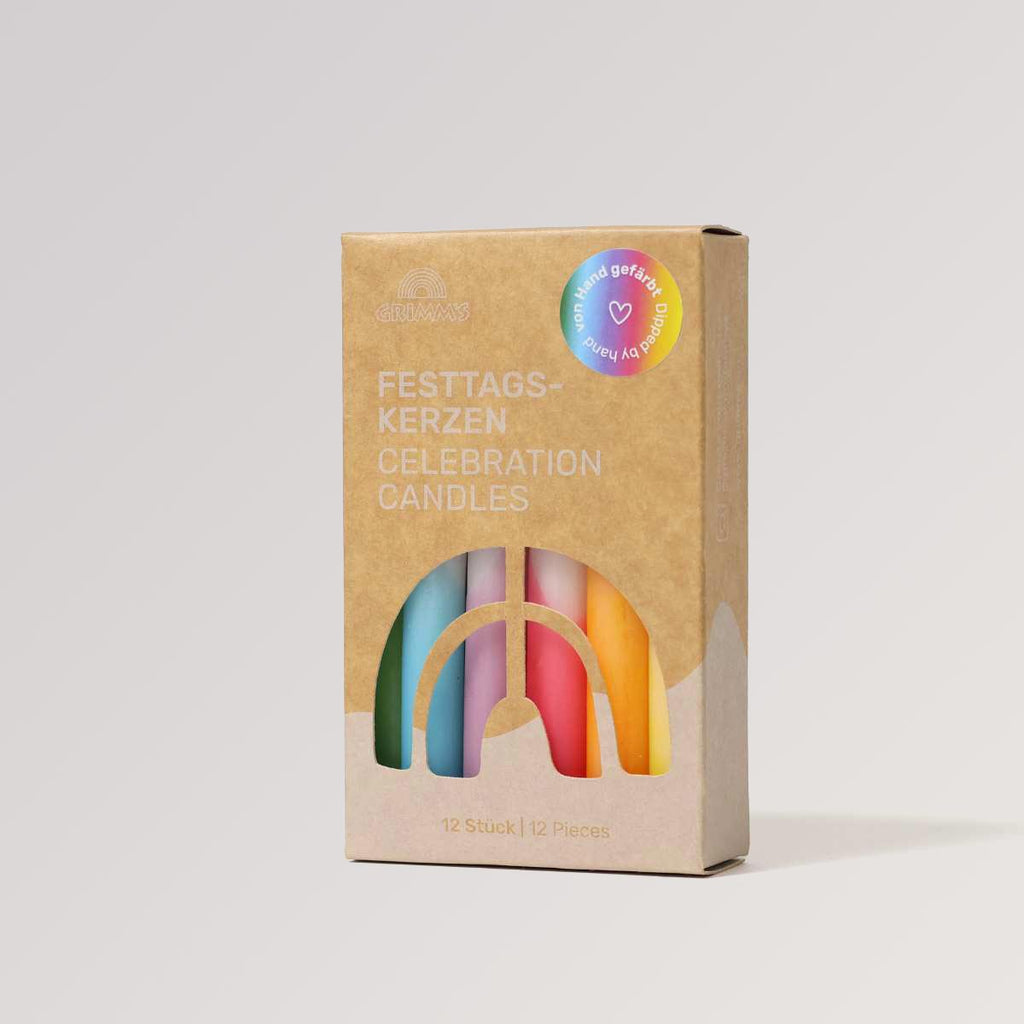 Die Grimm's Weihnachtskerzen Dip-Dye Regenbogen (12 Stück) sind handgedippte Cersin-Kerzen zur Weihnachtsdekoration und für Kindergeburtstage. Diese Kerzen erzeugen auf dem Geburtstagsring für Kinder eine Atmosphäre aus Wärme, Liebe und Glück.