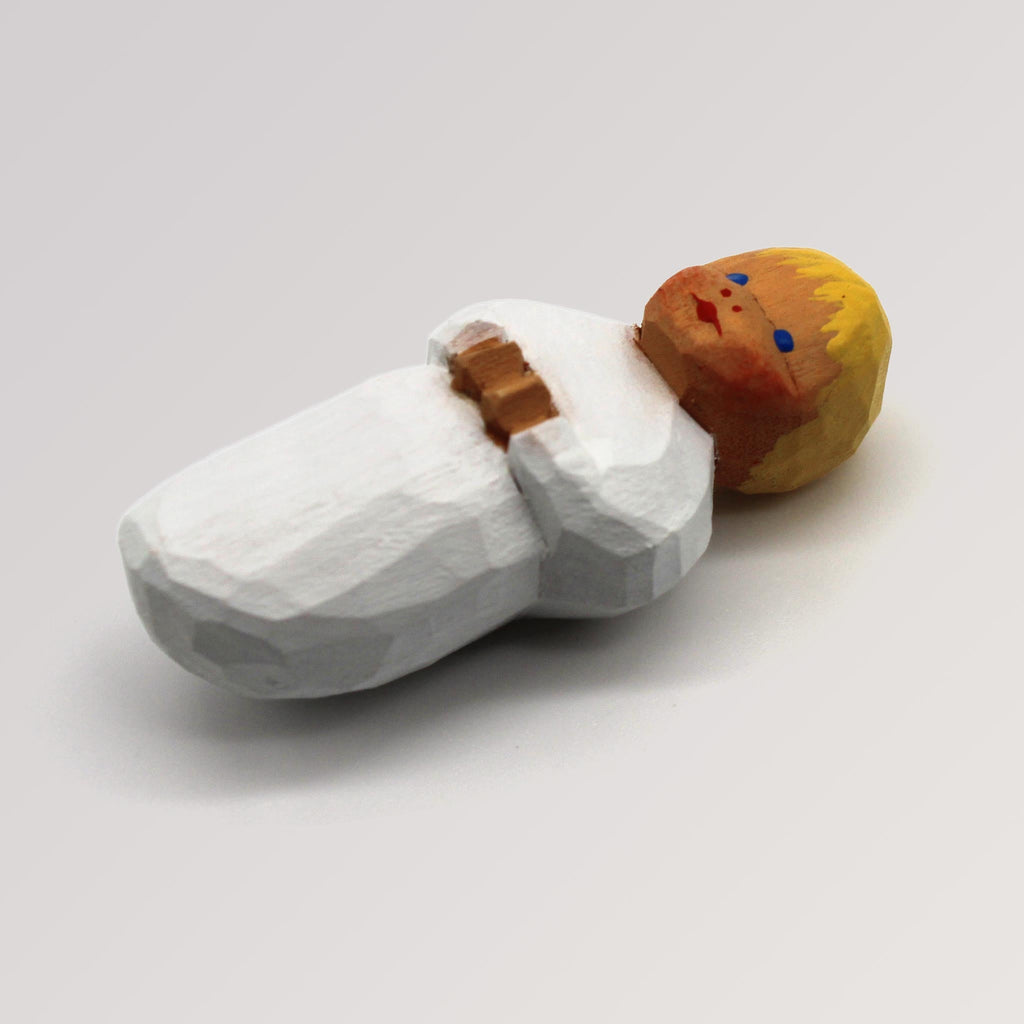 Krippenfigur und Holzfigur "Christkind ohne Krippe" von Lotte Sievers-Hahn (Typ 1 - Länge ca. 4,5 cm), von Schnitzmeistern aus massivem Lindenholz handgeschnitzt und von Künstlern mit Ölfarben handbemalt.