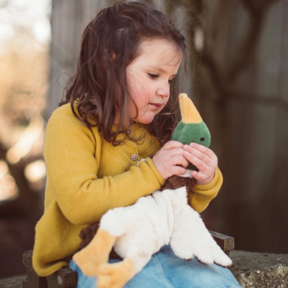 Der Senger Naturwelt Erpel (klein) ist Schmusetier und Wärmekissen in einem. Der freundliche Erpel schmiegt sich weich an, hört geduldig zu und schenkt – dank herausnehmbarem Körnerkissen – wohltuende Wärme oder sanfte Kühle. Ein handgefertigter Begleiter aus besten, zertifizierten Naturmaterialien für viele Jahre Geborgenheit.