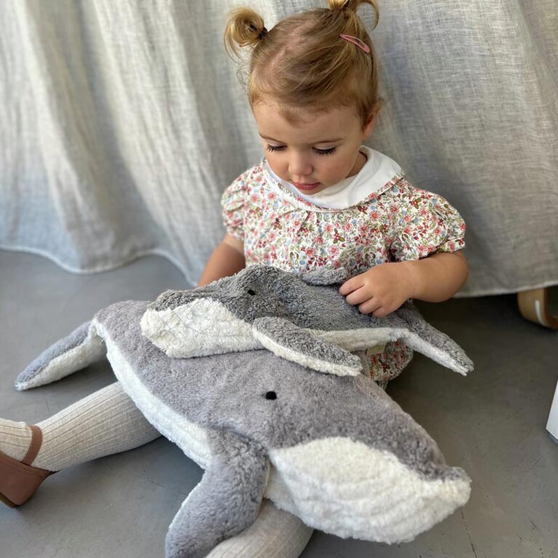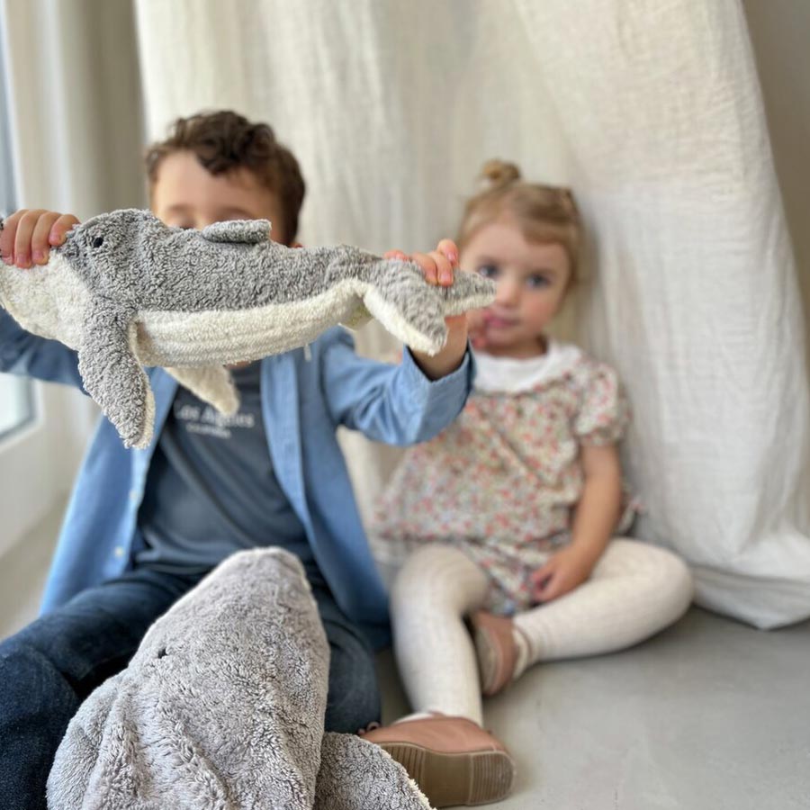 Der kleine graue Wal aus der Kollektion „Meerestiere“ von Senger Naturwelt ist Kuscheltier und Wärmekissen in einem. Mit seinem sanften Gewicht legt er sich an kleine Bäuche, beruhigt beim Einschlafen und begleitet gemütliche Vorlesezeiten – natürlich, langlebig und mit viel Liebe gefertigt.